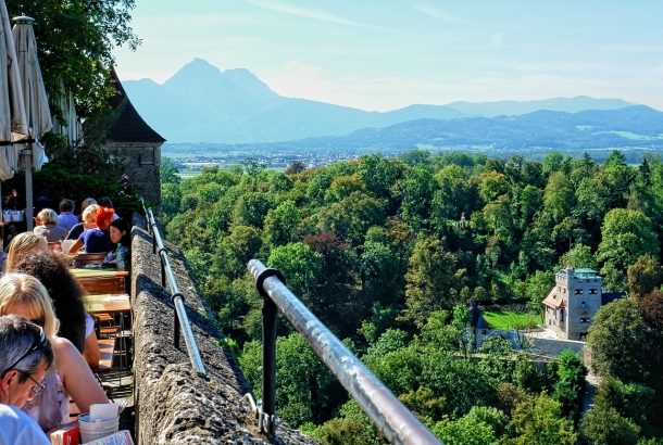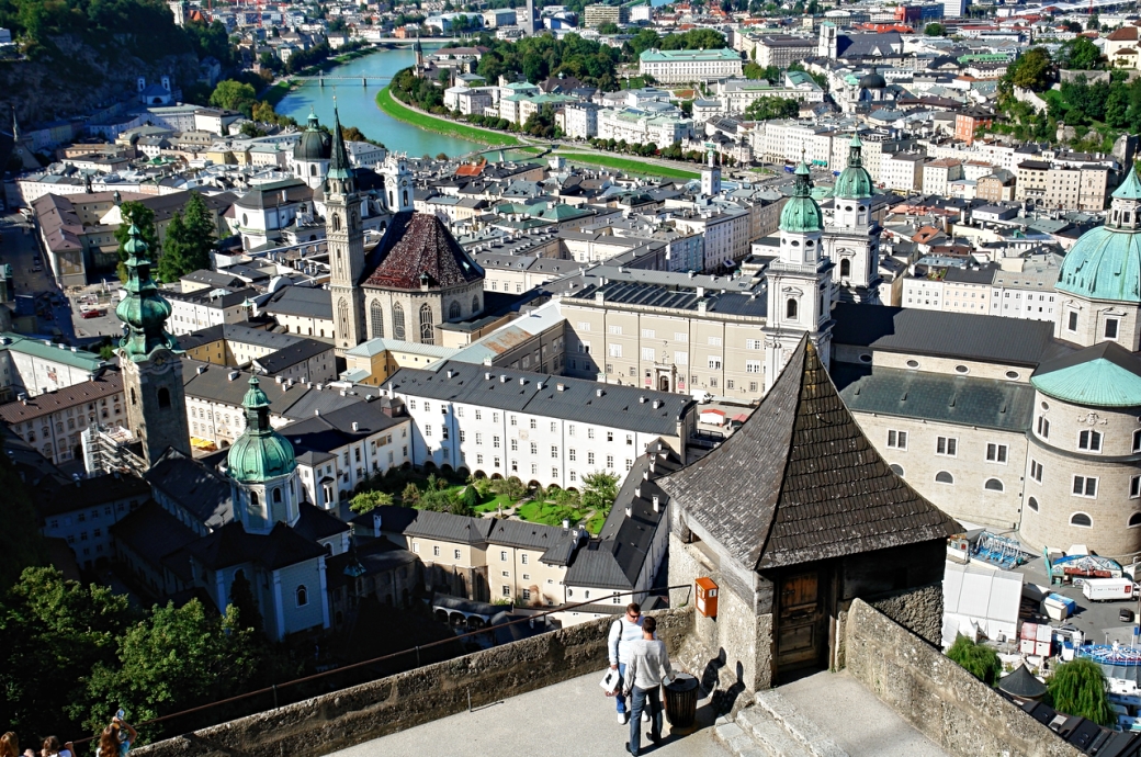 Die Unbezwingbare? Kaum mehr als eine Minute hat genügt, um uns vom "Unterland" der Altstadt Salzburgs nach oben auf den Festungsberg zu befördern. Die Festungsbahn - eine sogenannte Standseilbahn - hat bei einer maximalen Steigung von 60% etwa hundert Höhenmeter zu überwinden, um uns zur Hasengrabenbastei zu bringen. Die Hohensalzburg thront in etwa 542 Metern Höhe, 119 Meter über der Stadt, und beansprucht eine Fläche von immerhin 30.000 Quadratmetern. Im Jahre 1077 hatte Fürsterzbischof Gebhardt I. von Helffenstein auf der Anhöhe einen ersten Wohnturm errichtet, der noch heute den romanischen Kern des sogenannten Hohen Stockes bildet. Über die Jahrhunderte - die Hohensalzburg blickt auf eine Geschichte von 900 Jahren zurück! - ergänzten die Salzburger Fürsterzbischöfe die Burg durch immer neue Zu- und Anbauten, ließen ihr immer mehr fortifikatorische Verbesserungen zuteil werden, bis um 1500 durch Fürsterzbischof Leonhard von Keutschach - er baute u. a. den Hohen Stock zum Palas aus, erstellte die Ringmauer, die St. Georgskirche und die Burgzisterne - das heutige Erscheinungsbild, d. h. die Verwandlung der mittelalterlichen Burg zu einem wehrhaften, gleichwohl repräsentativen Palast, vollzogen war. Die Burg hatte zu allen Zeiten militärischen und repräsentativen Ansprüchen zu genügen, auch wenn sie, im 19. Jahrhundert, zeitweilig zu Kerker, Kaserne oder banaler Lagerstätte "degradiert" worden war. Echte und vermeintliche Feinde gab es immer und übergenug. Die Türken zum Beispiel, ja, sogar die recht selbstbewussten Salzburger Bürger galten als solche, forderten sie doch von ihrer Herrschaft mehr Rechte ein und protestierten sie immer wieder gegen die unerträglichen Abgaben. Dass sich die Salzburger Fürsterzbischöfe zu allem Überfluss als sehr autoritär und martialisch gefielen, ließ die Lage nicht selten eskalieren. So kam es 1525 im Rahmen eines Aufstands von Bauern und Bergleuten (der Salz- und Metallbergbau ist in Salzburg etwa 4.000 Jahre alt!) zu einer 14 lange Wochen währenden Belagerung der Burg, aber selbst dieser hielten die Befestigung und die Belagerten stand. Auch andere Zeitläufte konnten der Fortifikation nichts anhaben, so dass sich die Hohensalzburg noch heute allerbester Gesundheit erfreut. Also wohl auf immer unbezwingbar! |