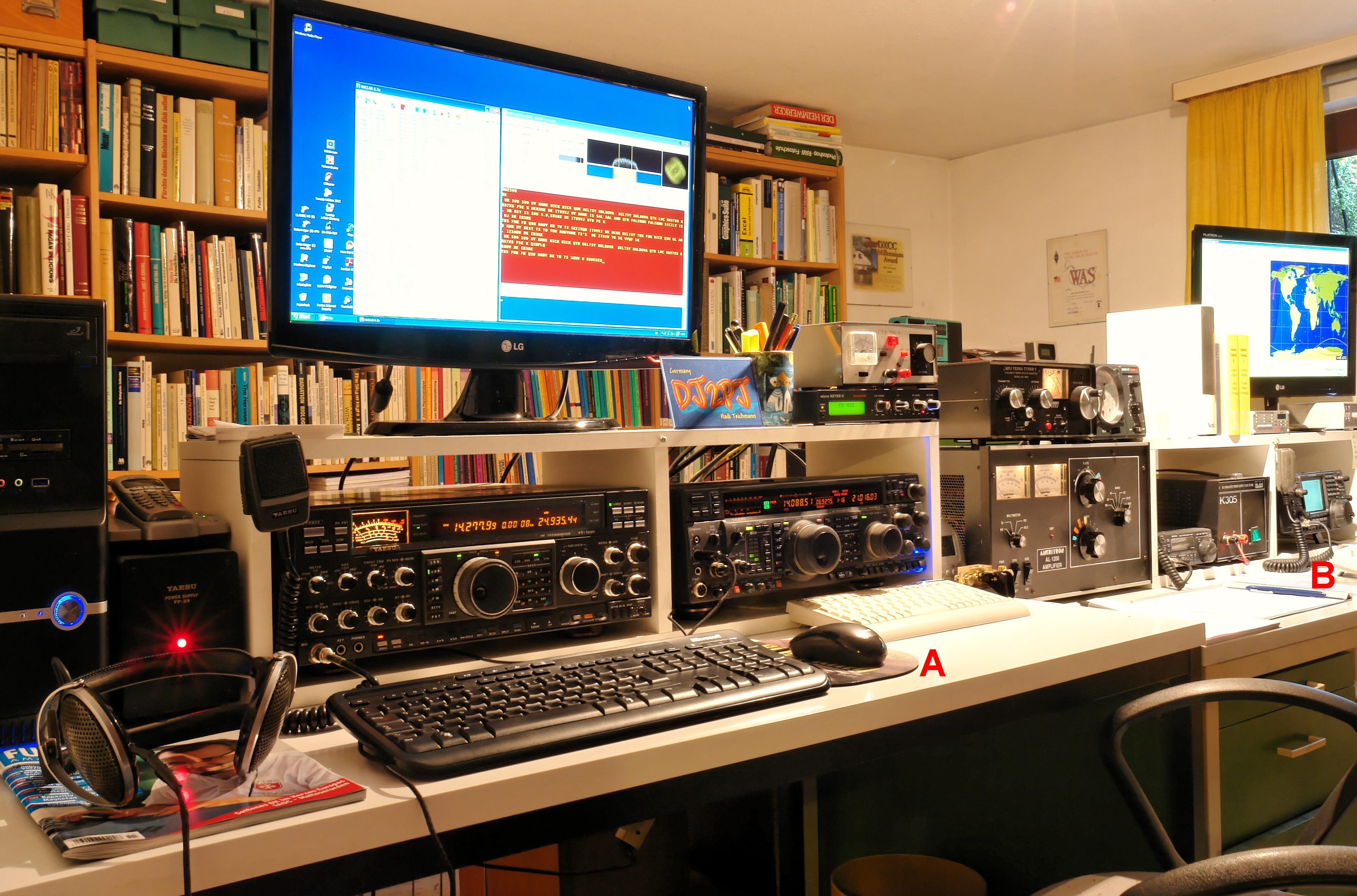 The Location DJ2PJ's shack, some 5 x 5 metres in size, is located in the basement of a house, built in 1972 on a small piece of land 28 metres long and 18 metres wide. The building lies in a densely populated residential area. The location is in no way a place for optimal or even near-optimal DXing. Station Philosophy The station concept reflects the operator's conviction that amateur radio, while being a technical-communicative hobby, should always be treated as a two-legged pet: one leg being experimentation (new radio modes, new operating and technical concepts...), the other one competition (DX, contests...). Should one of these parameters be missing, amateur radio would run the risk of dissolving in the abundance of other attractive communicative applications which our modern world readily offers (PC, Internet, smartphones, tablets...). This means that, at least partially, an amateur radio station should always be in a process of change (on the basis of experimentation and optimisation) and never be seen as something static or final.